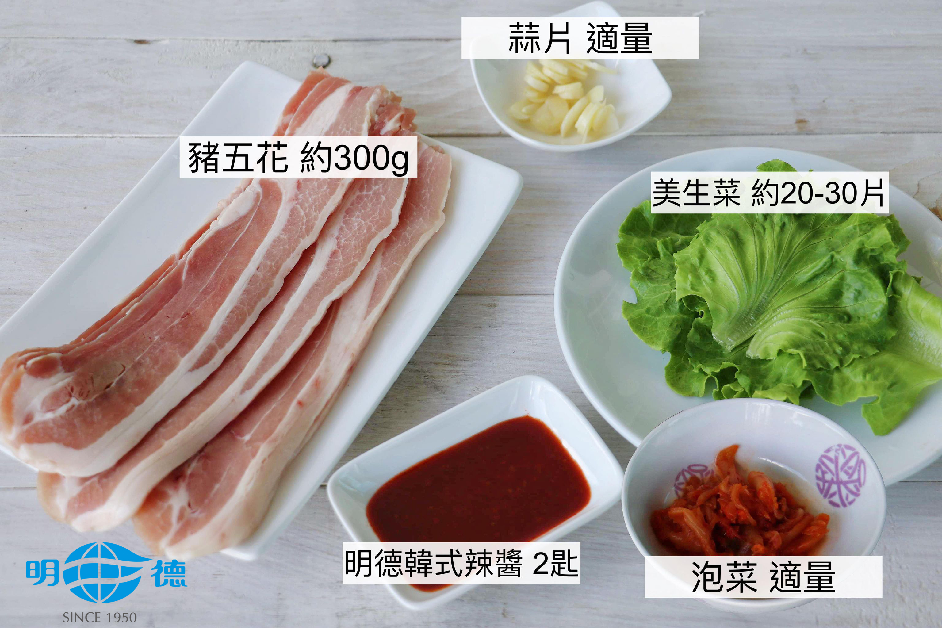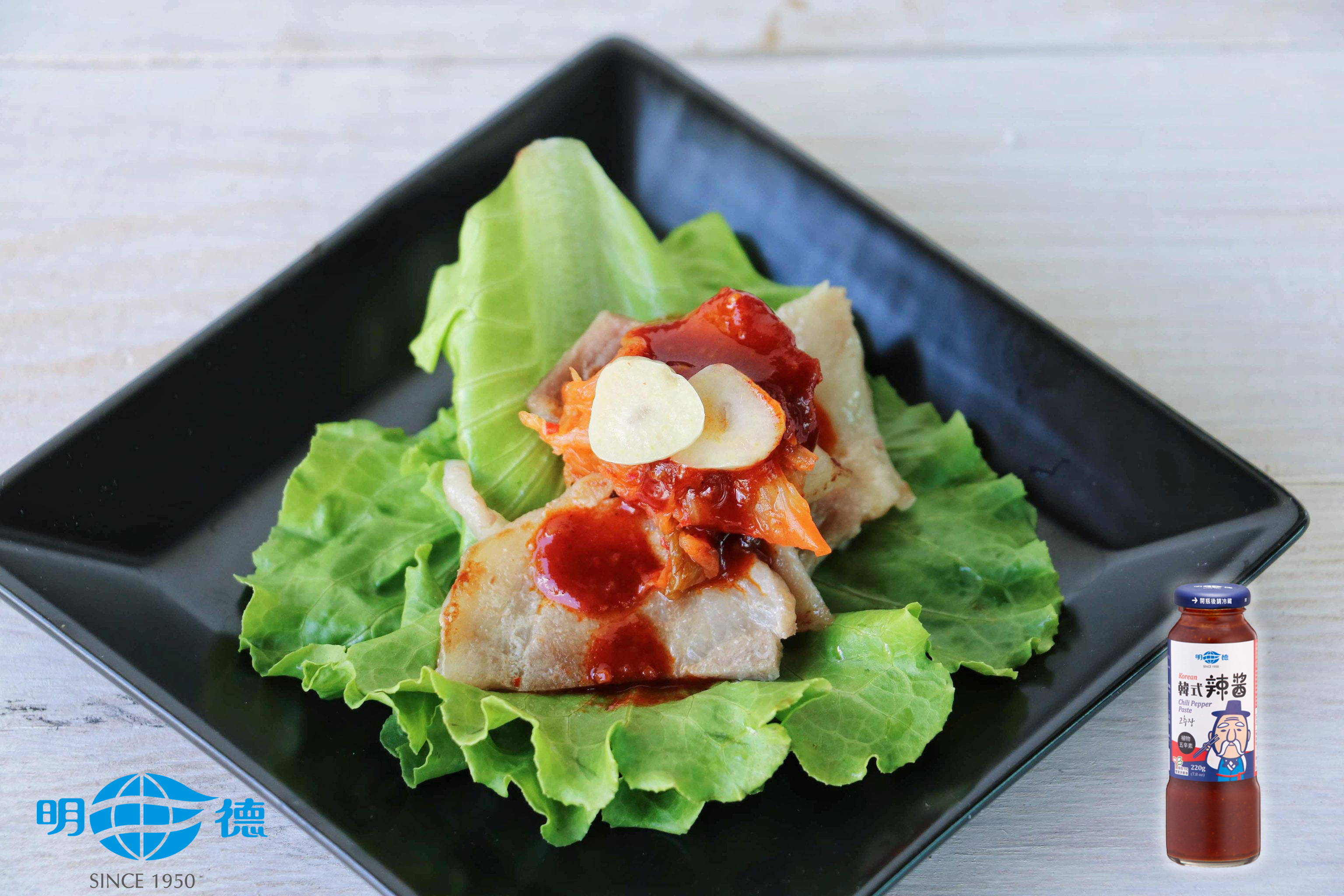 今天要介紹的是【明德生菜包肉韓式辣醬】,使用的材料有: