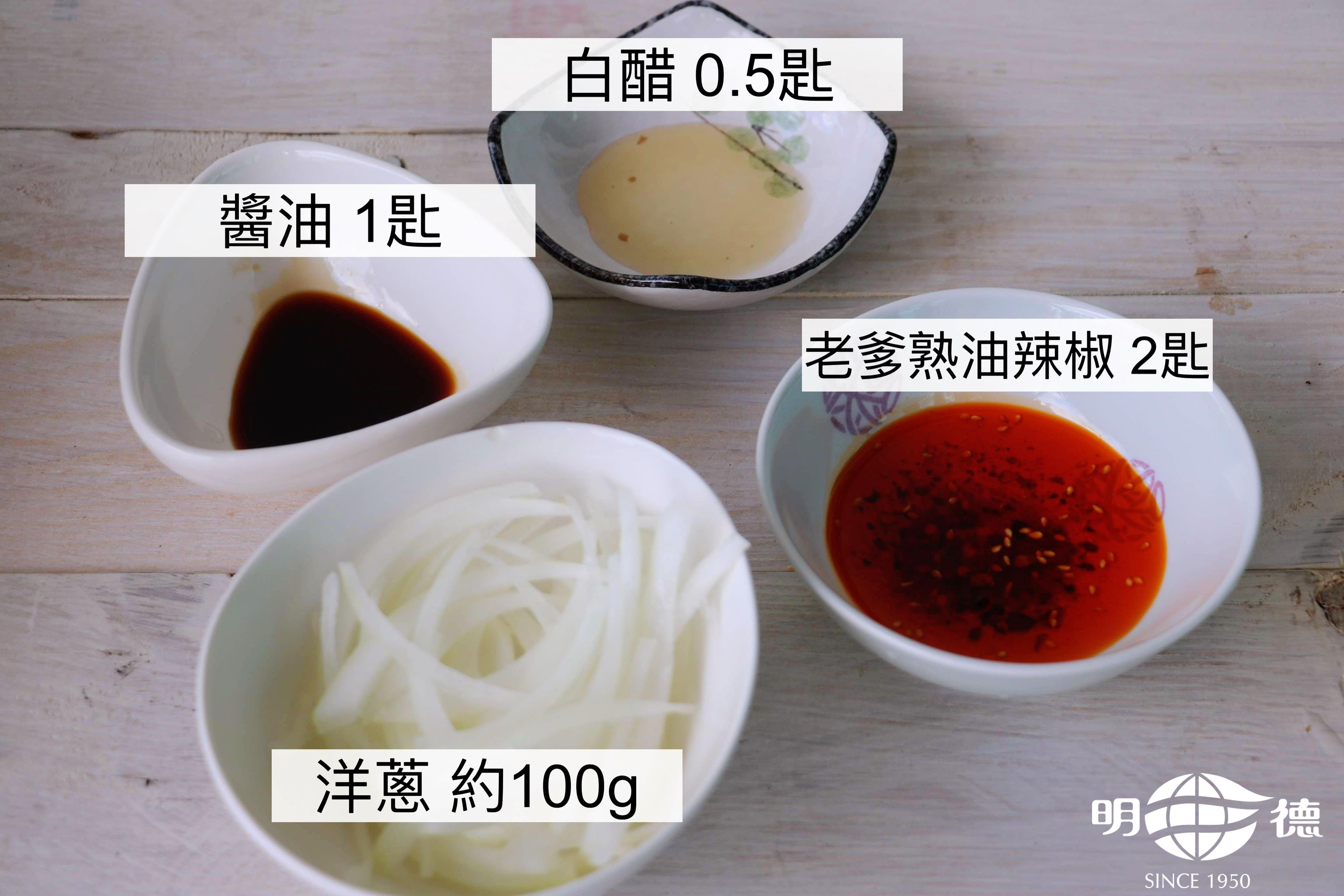 ※明德老爹熟油辣椒的辣度為大辣,如果不敢吃太辣的朋友,建議您辣油的比例可以減少、醬油和醋可以增加一些歐~