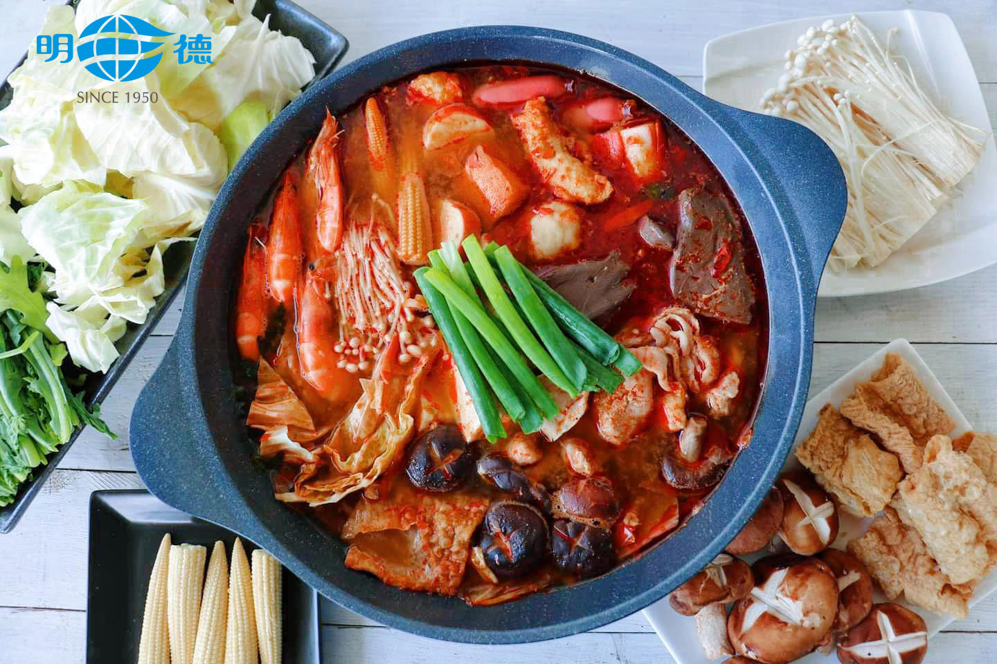 明德麻辣鍋底醬以招牌豆瓣醬為基底外,加入嚴選朝天椒及四川花椒,濃郁醬香與麻辣口感,是所有喜愛麻辣鍋的朋友一定要品味過的美味。